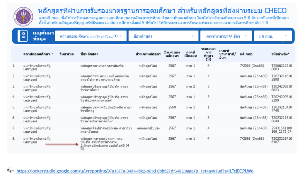 เอกสารการรับรองหลักสูตร